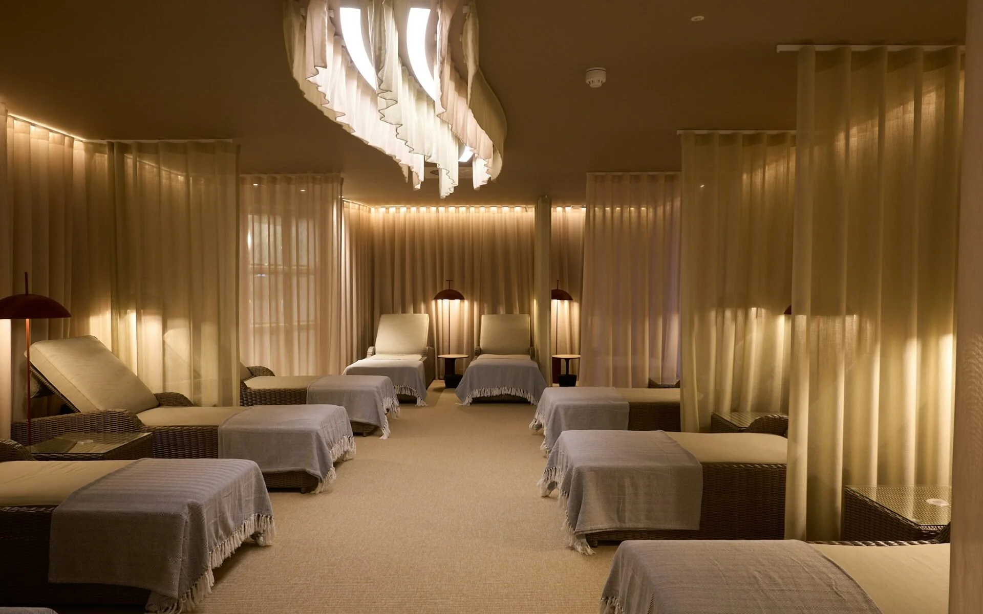 During childcare hours, there is plenty to enjoy depending on how active you feel. The spa includes an indoor pool, sauna, steam room and outdoor hot tub. Although we did not book treatments this time, there is a full menu available, from facials to massages, alongside calm spaces to relax afterwards.